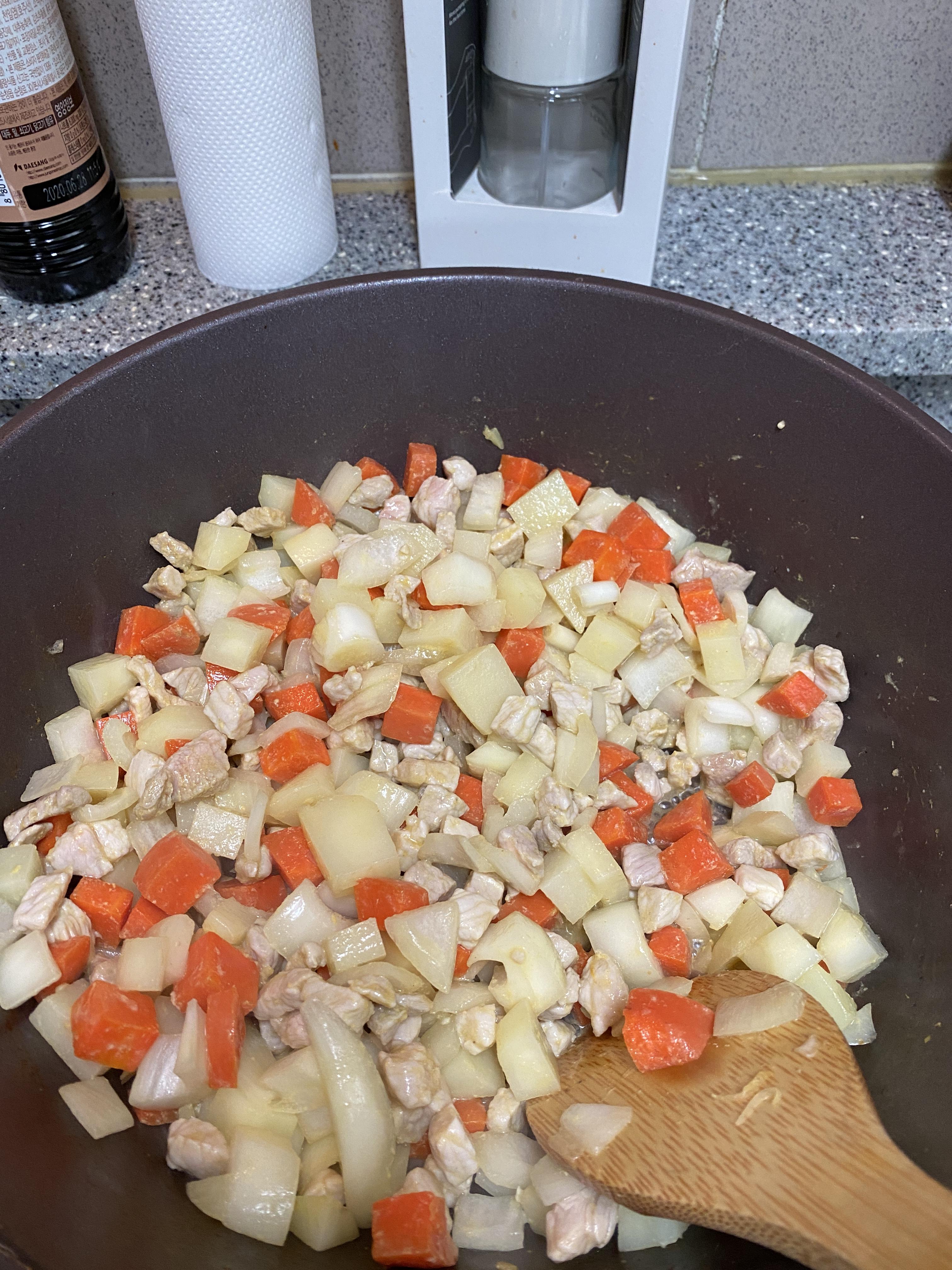 갑자기 누워있다 '카레에 밥비벼서 묵은지 올려먹고싶다' 라는 마음에 요리 도전!