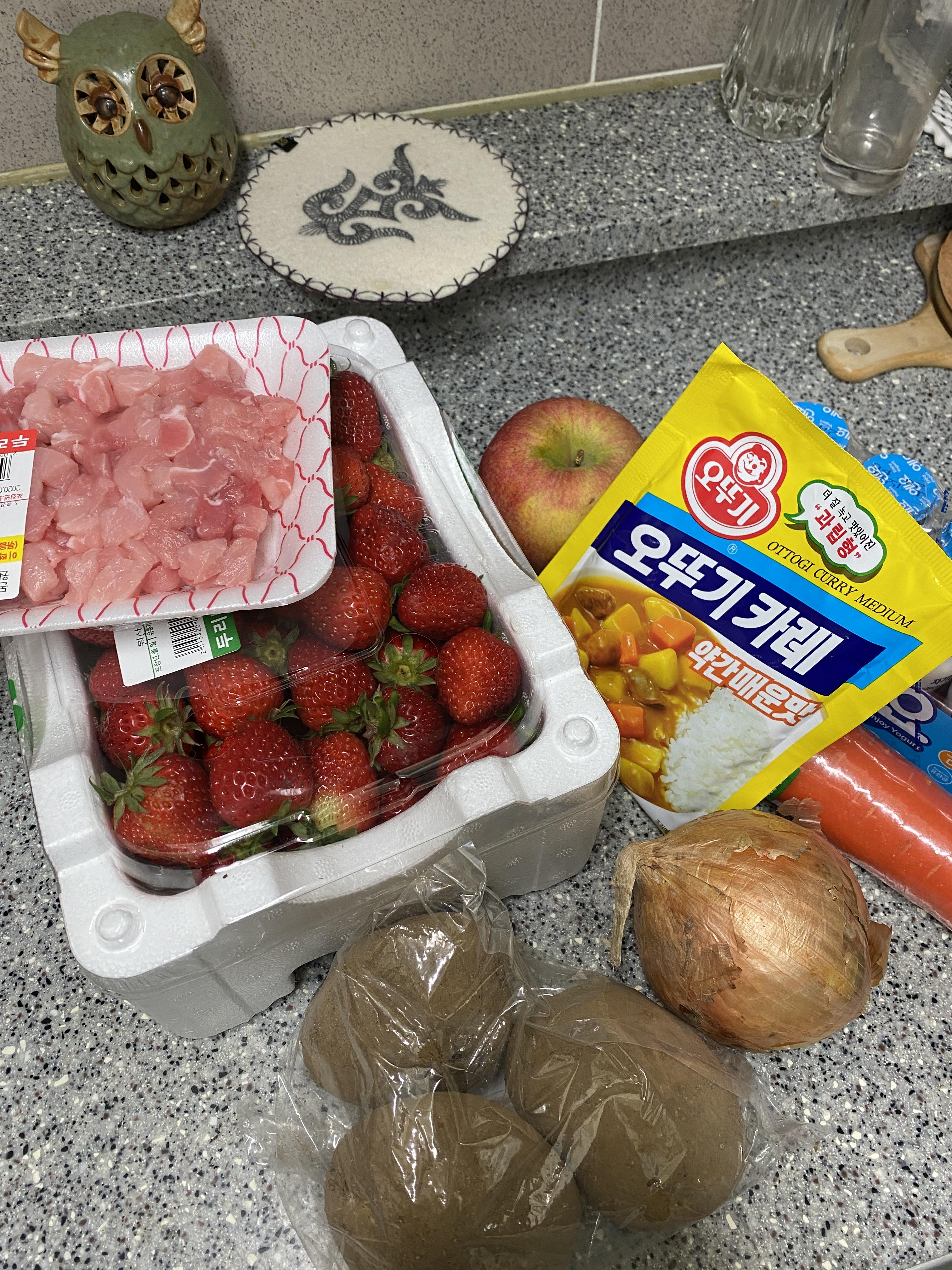 집 앞에 새로 생긴 마트가서 카레재료 하나씩 주섬주섬