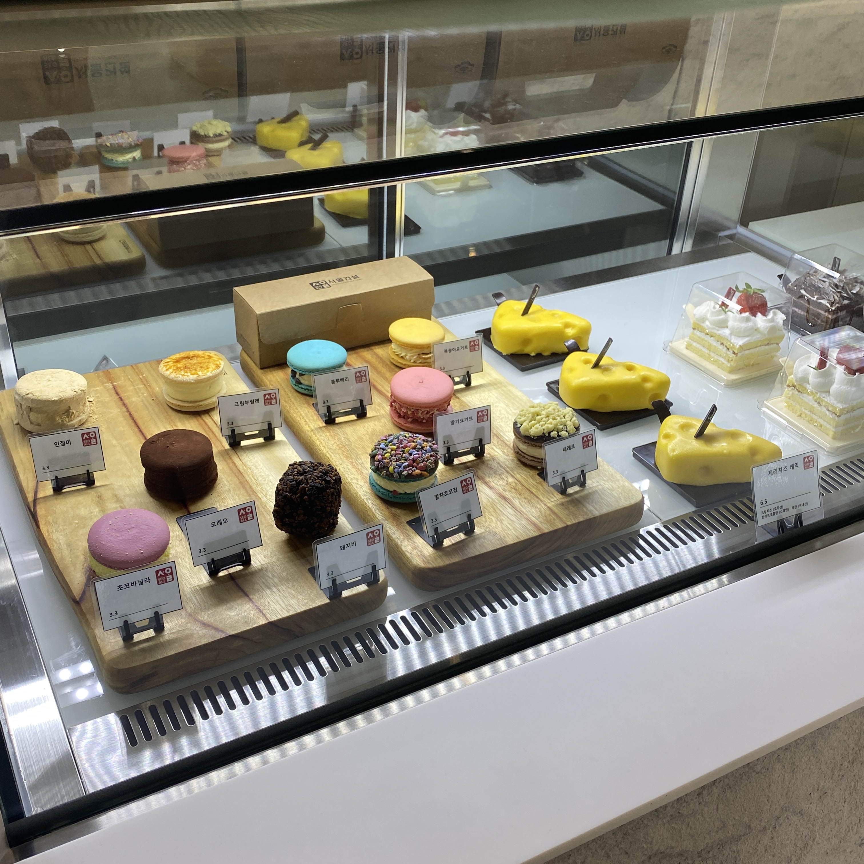 저 얇은 유리창 사이로 직접 베이킹하시는 모습.