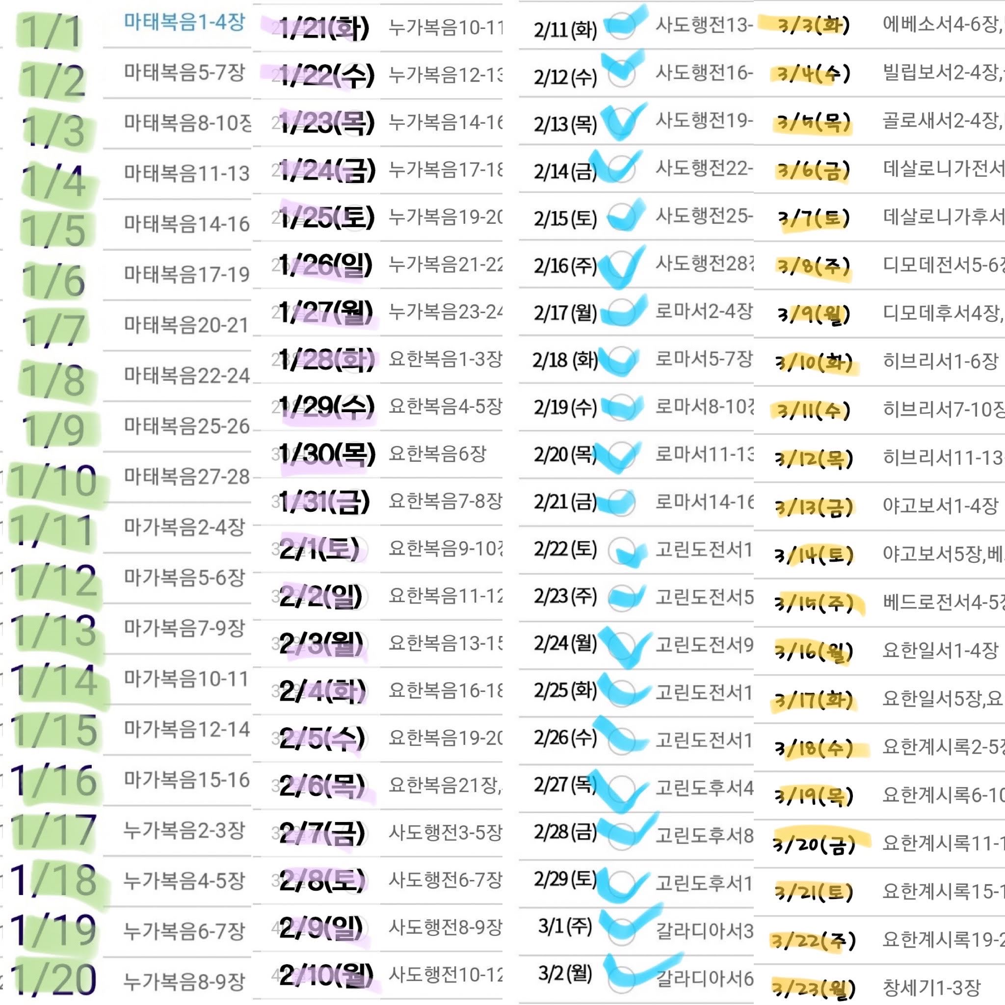 2020년 1월 1일부터 성경통독을 시작했다.