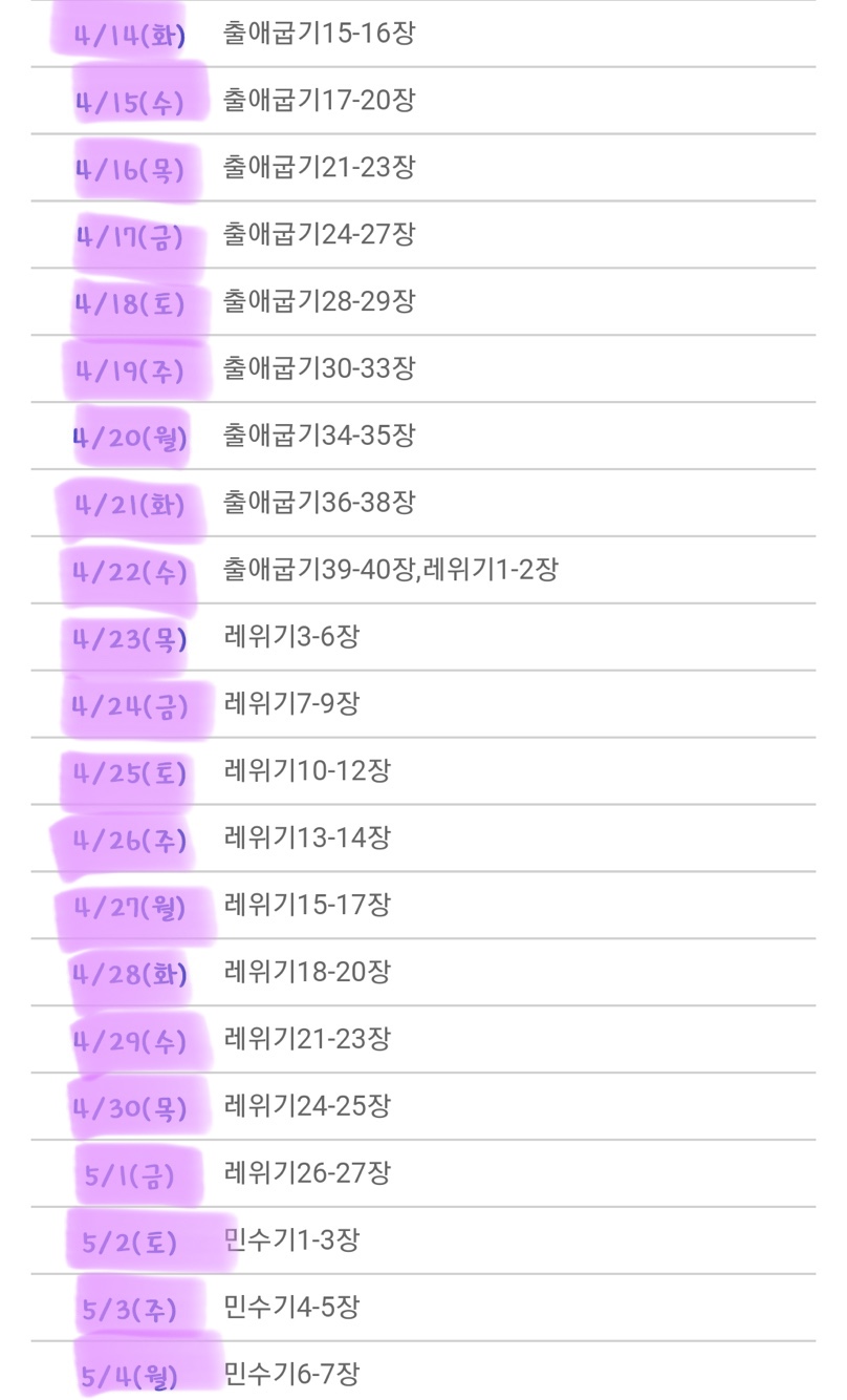 매번 창세기, 출애굽기 읽다가 끝나서